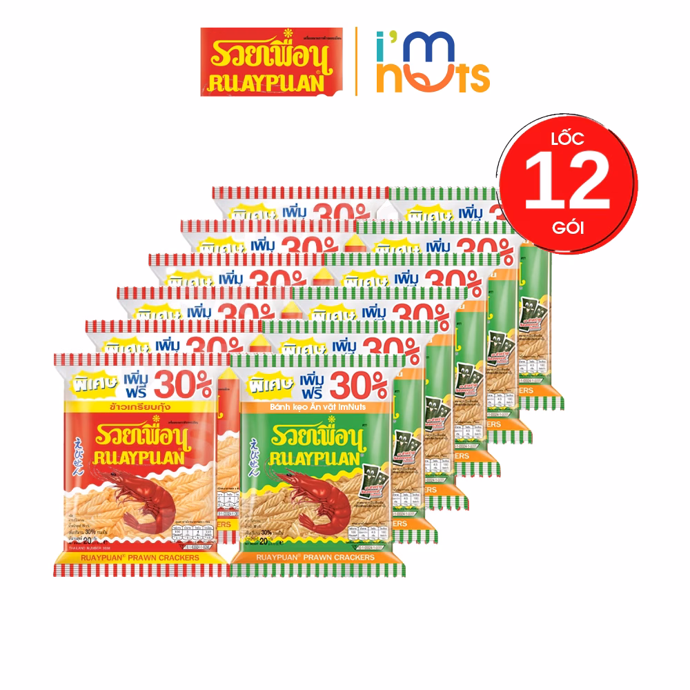 🔥 Snack Tôm Ruay Puan Thái Lan Lốc 12 Gói đang giảm giá!