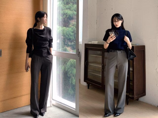 2. Quần âu ống suông (Wide-leg Trousers) – Đỉnh cao thanh lịch công sở