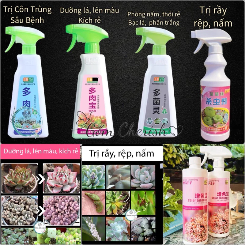 Bên cạnh việc chăm sóc đúng cách, sử dụng sản phẩm hỗ trợ cũng là một giải pháp hiệu quả để phòng ngừa và điều trị rệp và thối rễ. Một trong những sản phẩm được ưa chuộng là Xịt dưỡng lên màu sen đá kích rễ mầm chồi, xịt trị rệp côn trùng, chống thối rễ.