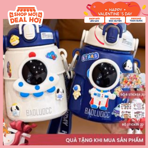 🔥 Bình giữ nhiệt cho bé đi học INOX 316 850ML bình nước trẻ em phi hành gia tàu vũ trụ có dây đeo có quà tặng kèm TL2316 đang giảm giá!