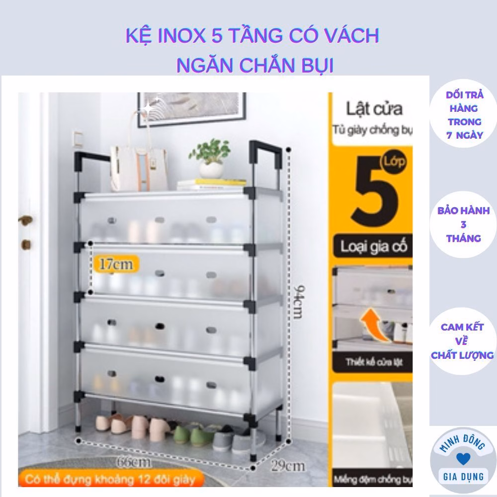 🔥 Kệ Inox 5 Tầng Có Vách Ngăn Chắn Bụi, Giá Inox Để Giày Dép 5 Tầng Có Nắp Đậy, Tủ Giày mới( mặt sau k có màng chắn) đang giảm giá!