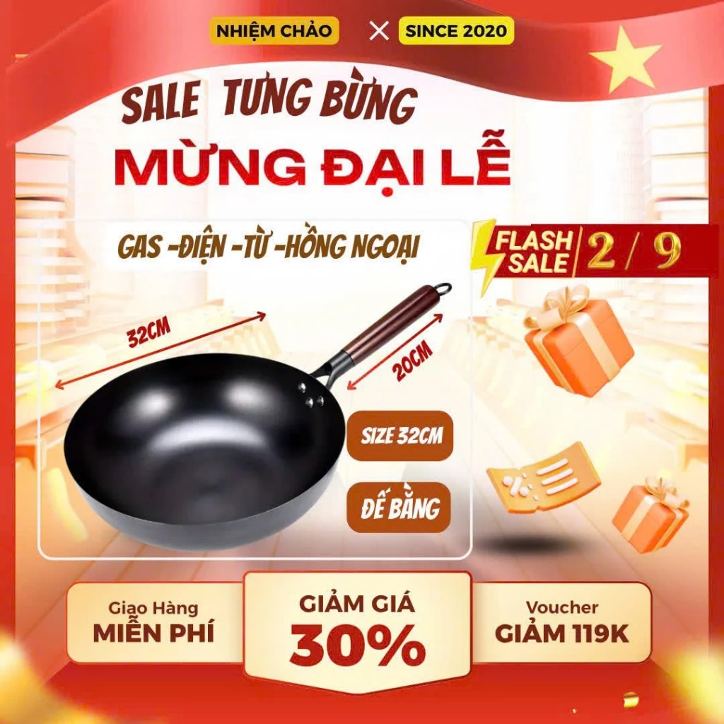 🔥 Thép Carbon Đáy Bằng 34cm Chống Dính Giảm Giá 30% Miễn Phí Giao Hàng Voucher Giảm 119K đang giảm giá!