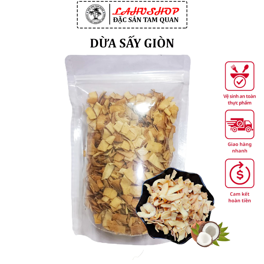 Dừa sấy giòn Bình Định được sản xuất theo quy trình nghiêm ngặt, đảm bảo chất lượng và an toàn cho sức khỏe của người tiêu dùng. Sản phẩm có độ giòn tan hoàn hảo, hương vị thơm ngon và không bị ỉu sau một thời gian dài bảo quản.