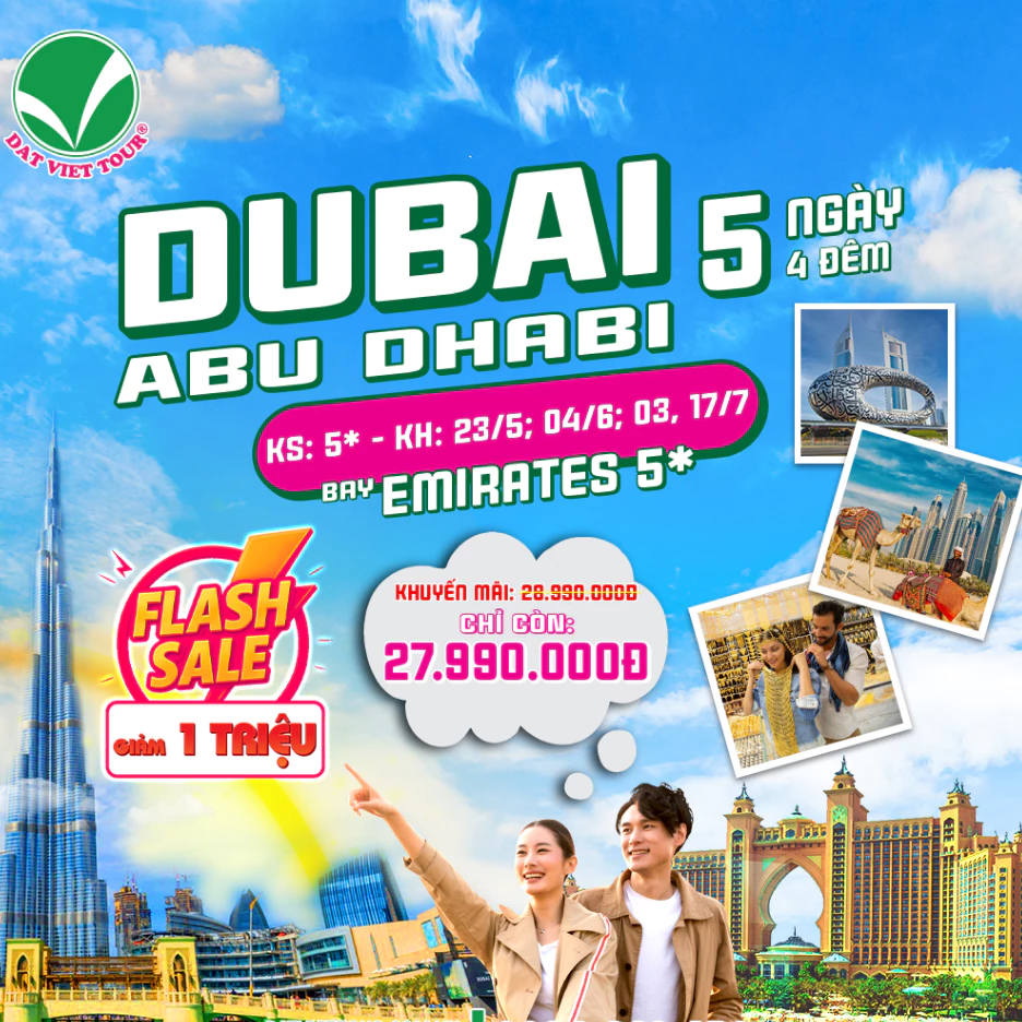 🔥 TOUR DUBAI | ABU DHABI | BAY EMIRATES 5 SAO 5N4Đ đang giảm giá!