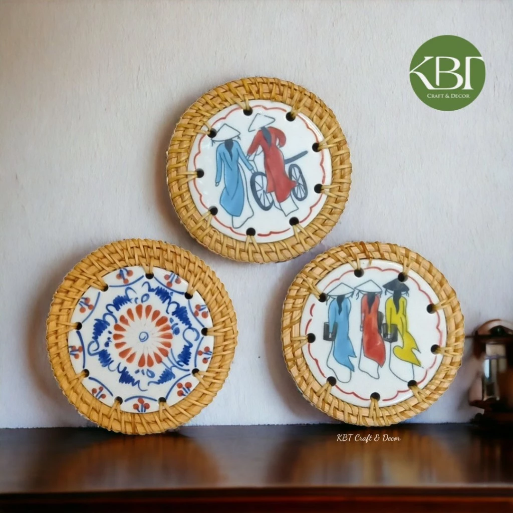 🔥 Lót ly,cốc mây tâm sứ trang trí decor bàn trà, quán cafe (KBT01LMS) đang giảm giá!