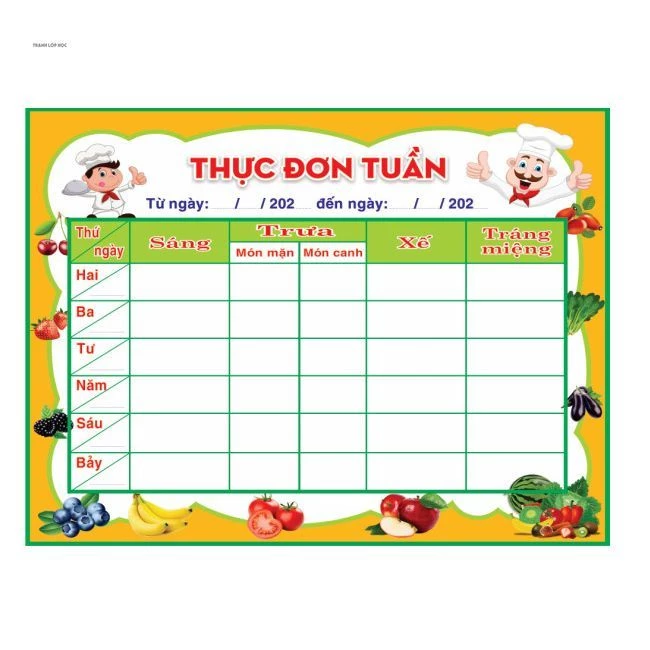 - Giáo dục dinh dưỡng sớm: Bảng thực đơn giúp trẻ học về các loại thực phẩm và dinh dưỡng một cách thú vị và trực quan.