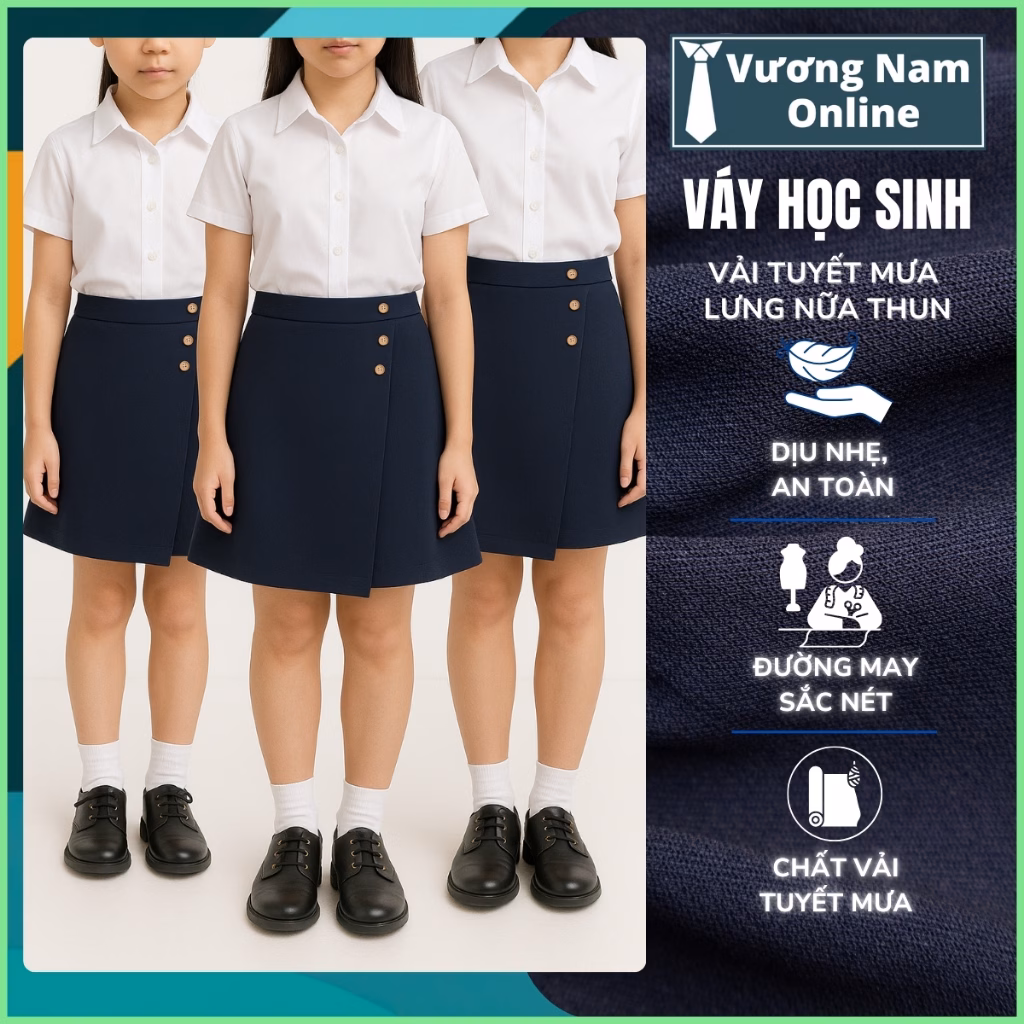 Trước hết, hãy cùng chúng tôi khám phá những yếu tố quan trọng khi chọn váy học sinh, từ chất liệu vải, thiết kế cho đến độ bền. Đồng thời, chúng tôi cũng sẽ giới thiệu đến bạn một sản phẩm váy học sinh nữ màu xanh đen cấp 1,2 chất lượng, giúp bạn có thêm lựa chọn cho con em mình.