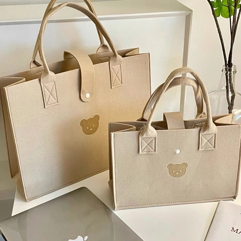 Không nhất thiết phải mua những mẫu đắt tiền để có chất lượng tốt. Các thương hiệu địa phương hoặc các nhà thiết kế độc lập thường cung cấp túi chất nỉ dạ với mức giá hợp lý, như mẫu túi xách tay nữ bản to gấu màu nâu trà sữa được nhắc ở trên.