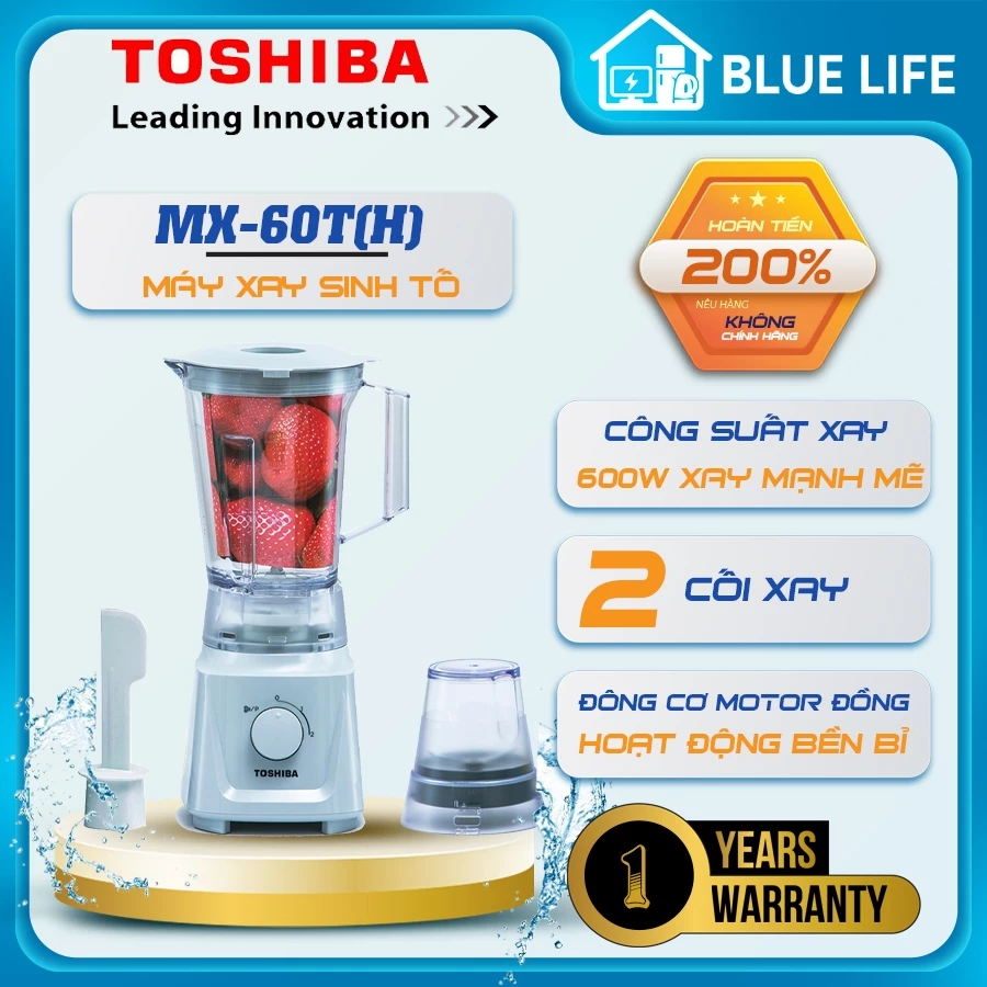 🔥 Máy xay sinh tố Toshiba MX-60T(H) – 2 cối – 1.5L – Hàng chính hãng đang giảm giá!